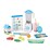 Whip up delicious playtime smoothies with this pretend play blender! Use the wooden knife to slice and wooden fruits and vegetables, choose other healthful ingredients, like kale or protein powder, and pop them in the blender. Add a dash of pretend milk, spin the dial to blend, pour into a cup with lid and straw, and serve! There's a double-sided reusable menu card for taking orders, and cup inserts to add realistic color to smoothies. Any time is a good time for a smoothie!