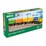 33982 Three-Wagon Cargo Train includes 7 pieces: 1x Wooden Cargo Engine, 1x Cargo Wagon with Sliding Doors, 1x Silver Metallic Motor Load, 2x Wagons for Loads, 1x Orange Container Load, 1x Light Green Container Load.