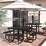The square picnic table set with 4 benches can comfortably accommodate up to 8 individuals, providing a sociable space for connecting with friends and family. Whether you're hosting a backyard barbecue, enjoying a picnic, or just seeking a change of scenery for your meals, this portable set is designed to adapt to a variety of outdoor settings. With durable coated metal structure, the camping table with seat is weatherproof for years of outdoor use, which is suitable for courtyard, lawn or poolside. Coming with an umbrella hole, the square table can accommodate most standard patio umbrellas, offering the option to dine in shaded comfort when the sun is out.