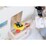 The dollhouse's energy efficient design includes a wind turbine, a solar cell panel, electric inverter, recycling bins, a rain barrel, a biofacade, and a blind that can adjust the amount of sunlight and air circulation.