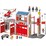 The Fire Station includes sliding pole, fire alarm (2 x AAA batteries required), helicopter and helipad, as well as two garages for emergency fire vehicles.