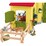 Farmer Paul always has his hands full. The pigs are grunting loudly and want to be fed, and the cow in the barn is already looking pretty hungry. But before Farmer Paul feeds her some hay, the little calf gets its milk from the bottle. All the animals come into the barn to eat. Especially the pigs, hoping for a juicy apple or a crunchy carrot. Once they have eaten their fill, they go back outside. Farmer Paul has put up fences around the farm so that everyone can get some fresh air. But the fences don't stop the cat from climbing onto the roof or the doves from flying all over the place. They always come back, though, because Farmer Paul takes such great care of them, too. He has even built the doves their own house, called a dovecote, where they like to hide from the cat when it comes slinking around. Pretty nifty! There's room for even more animals in the matching pony box, which is available separately. Fun Fact: The cat prefers to walk on the roof. The mouse likes to hide in the hayloft. Content: 1x stable building, 1x Farmer Paul, 1x cow, 1x calf, 1x pig, 1x piglet, 1x cat, 1x dove, 1x mouse, 1x dovecote, 2x flower box, 2x straw feeder, 4x fence long, 2x fence short, 1x crane with winch, 1x fodder carousel, 1x hay hollow, 1x water hose, 1x ladder, 1x feed box, 1x rack, 1x bowl, 1x feeding bottle, 1x cow brush, 1x feeding trough, 1x pitchfork, 1x spikeable hay, 1x broom, 1x wheelbarrow, 1x bucket, 1x straw bale, 1x hay bale, 8x carrots, 6x apples, 1x eggs, 1x sticker sheetIncludes: