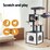 Introducing our cat tree: featuring a stable foundation, robust wooden build, sisal posts for scratching, plush covering for comfort, multiple spots for resting and play, and easy assembly for convenience. Ideal for pampering your feline friend with comfort and entertainment.