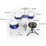 This kit features 2 tom drums, bass drum, and a snare drum - the snare is free of the bass drum - and comes with a stool. Supplied with drum sticks.