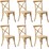 Oikiture 6PCS Crossback Dining Chair Solid Birch Timber Wood Ratan Seat Natural