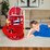 Hydrant-shaped firehouse with a sliding pole, winding slide, a ladder, helicopter, fire engine and a command vehicle on a rotating base