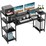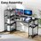 63 Large Industrial Computer Desk with Storage Shelves, Printer Stand & Bookshelf - Black