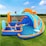 Kids water park with slide, trampoline, climbing wall and water cannon