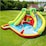Kids water park with two slides, trampoline, climbing wall and water cannon
