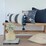 - Contemporary tie dye interpretation with navy and white linear pattern.
