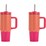 2x Annabel Trends Super Sip Wave 380ml S/S Cup Double Wall/Straw Orange Hot PNK
