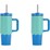 2x Annabel Trends Super Sip Wave 380ml S/S Cup Double Walled w/ Straw Aqua Blue