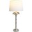 - Constructed with an iron and polyresin body, topped with a linen shade for a sophisticated look.