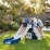 Royal Stairway Adventure: Slide, Hoop & Storage Playset - Blue and Grey