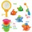 - 1 Set (1 X Fishing Pole + 1 X Fishing Net + 4Pcs Fish + 2Pcs Swimming Whales + 4Pcs Stack Cups)