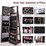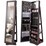 This rotating cabinet keeps all your jewelry organized and easily accessible in one place. Its spacious design includes 120 earring slots, 54 earring holes, 78 ring slots, 24 necklace hooks, a bracelet bar, 5 storage racks, 2 pockets and 3 acrylic boxes for storing all your treasures. The full-length mirror gives you a head-to-toe view of your outfit, while the 360-degree rotating base allows for easy access to your jewelry and cosmetics while doing makeup. Made from durable P2 MDF, this freestanding jewelry armoire is built to last. Elevate the appearance of your room with this mirrored jewelry cabinet.