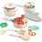 Includes: pot, 2 pans, 2 lids, 2 cooking accessories, toy oven glove, and 11 foods for cooking and tabling