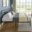 - Industrial pipe-rail aesthetic defines the bed head and matching foot