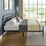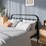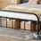 - Industrial pipe-rail aesthetic defines the bed head and matching foot