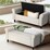 Oikiture Storage Ottoman Blanket Box Linen/Faux Leather Toy Foot Stool L/XL Light Grey Linen 97 cm