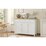 The Clifton Scandinavian sideboard brings coastal flair to your living, dining, or kitchen. With clean lines and a white - base, natural - top contrast, it's stylish and versatile. It has a large serving top, a dual - cabinet design with three doors (silver chrome handles and adjustable shelves), two drawers for silverware, and fully extendable drawer runners. Assembly is easy with pre - assembled slides.