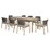 - Features wicker rope backed chairs with plush grey cushions