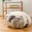 Himalayan Lhasa Longwool Sheepskin Ottoman with safety zipper, 100% polystyrene bean fill, leather base.