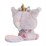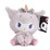Kuromi looks less mischievous than usual as a soft, cuddly pastel purple unicorn with rainbow details. This plush features Kuromi in a sitting pose, wearing her signature black outfit style with velvety-soft pink hooves that match her skull bow and the soft pink baubles on her iconic jester's hat. Her eye-catching, shiny gold metallic horn and sleepy unicorn embroidered eye details make this plush a unique piece for collectors and Sanrio fans of all styles. All details are embroidered, making this plush safe for ages 1 and up. Surface-washable for easy cleaning; do not machine-wash or use harsh chemical cleaners. Ships in a protective poly bag.