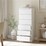 This modern white handle-free chest of drawers dresser is a remarkable piece that showcases a distinct contemporary design. It effectively clears clutter and brings a sleek, minimalist aesthetic to your space. Ideal for bedrooms, living rooms or any area in need of storage, this chest of drawers dresser features a pristine white finish that adds a touch of elegance. Standing sturdily, it presents a harmonious blend of style and functionality, truly making it a standout storage solution.