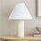 - Neutral fabric lampshade diffuses light to create a warm atmosphere
