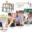 This set, including a table, bench, and 2 stools, is designed for up to 4 people to use
