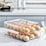 Multi-layer stacking: The stackable design greatly increases the capacity of the eggs. One-tier egg storage container holds up to 18 eggs The 2-tier stackable design helps maximize your space and provides a maximum capacity of 36 eggs.