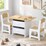 Oikiture Kids Table and Chairs Set Wooden Play Study Desk with Toy Storage Box