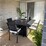 Outdoor dining chairs are made of Textilene fabric with cozy foam inside. The main frame of the chair is made of aluminum. It maintains a stable appearance even in harsh climatic and weather conditions. The surface has a black powder coating that prevents fading and staining caused by prolonged outdoor use and is easy to clean.