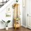 Fin Bamboo Clothes Rail Stand Freestanding Garment Rack Corner Shelf Shoe Rack Hooks