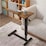 What a portable laptop desk in the homes, it features a tiltable desktop and adjustable heights, enables you work or watching TV in a sitting or standing position, with hidden wheels easy to move from room to room. The base allows to slide under low couches or bed. Great accessory for convenience.
