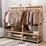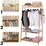Fin Solid Wood Coat Rack Stand Clothes Hanging Rail Rack Shelf Closet Hooks Portable
