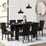 Oikiture 160cm Extendable Dining Table with 6PCS Dining Chairs PU Leather Black