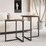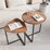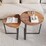 Living room nesting coffee table set of 2, includes a larger round table and a smaller triangle coffee table, Large coffee table size: 45cm(W)*48(H); Small coffee table size: 42cm(W)*40cm(H). Our durable and stable nesting coffee table consists of a p2 MDF table top and sturdy metal legs.