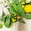 Colour: Green leaves with yellow lemons and small white and orange flowers