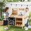Turn your backyard into a magical play space with our little ones grill playset! Crafted from reliable fir wood, this pretend BBQ kitchen set is built to last. Little ones can have fun washing veggies in the sink and grilling up a storm on the BBQ, complete with food and utensils for a realistic cooking experience. The chalkboard with chalk and an eraser adds another fun element. When playtime is over, little ones can tidy up by storing the accessories in the built-in storage space. They can even personalize their grill with paint, bringing a creative touch to their play experience. This wooden BBQ grill playset is a great gift for little ones over 3 years old, providing endless hours of entertainment.