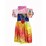 Multi-coloured satin skirt with red and gold glitter print and organza rose at the waist