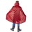 Long red cloak with printed details features a high, stand up collar with silver foil accents on the shoulders