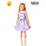 Satin purple tutu dress with tulle underlay and trademark belly badge of loveheart lolly pops in the centre of the tummy