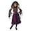 Headpiece is a crown of purple faux gemstones on a skull and web design with a tulle veil flowing out