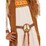 Fabric belt with a Peace symbol foam buckle and faux suede-look tassels at the bottom