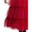 Red polyester long dress with lace outer layer and lining underneath and Hook and loop tabs at rear