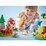 This toddler toy features a savannah scene where a tigress and a tiger cub figure feed on a bone then play on the rocks, and an elephant figure leads its calf to a waterfall. Toddlers use fine motor skills as they clip the baby to the adult elephant's tail. At the beach the turtles figures are laying eggs. In the forest the panda figure and its cub play under the cherry blossom, while cute deer figures graze in the glade.