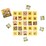 To set up the game, lay out 30 cards in a grid (49 cards with 6-8 players) and give one card face down to each player. Each card has five attributes, with each attribute having two states: large/small, light/dark, one/two arms, with/without sunglasses, and with/without popcorn. (As noted above, combining the two games adds a sixth attribute: pig/dog nose.) Someone shouts "Go!", then everyone looks at their card in hand. Players then start grabbing cards from the grid and stacking them in hand. The card grabbed must be identical to the top card in hand or differ from that top card in only one way. Thus, as you grab cards, the attributes of that top card will keep changing, forcing you to look for matches in new ways.