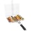 The safety slide buckle on the handle of the veggie grill basket slides up and locks to secure the grill clips so that you can rotate it 360° at will. Both sides are heated evenly for delicious kebabs. the small mesh grid prevents smaller items from falling out, the safety latch design increases convenience and safety.